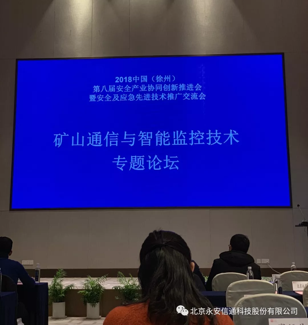 2018年12月17日,北京永安信通科技有限公司刘思平博士带领相关人员受邀前往中国徐州,参加第八届安全产业协同创新推进会暨安全应急先进技术推广交流会。江苏省政府、应急管理部、兵工学会、安全产业协会、煤炭工业协会有关司局领导,徐州市领导及相关部门负责人,国内安全产业有关企业和高校、研究院所负责人,国外专家代表等500多名嘉宾参加了本次活动。江苏省人民政府副省长马秋林、中国工程院院士夏照帆、工信部安全生产司长司金鑫到会指导并发表讲话。