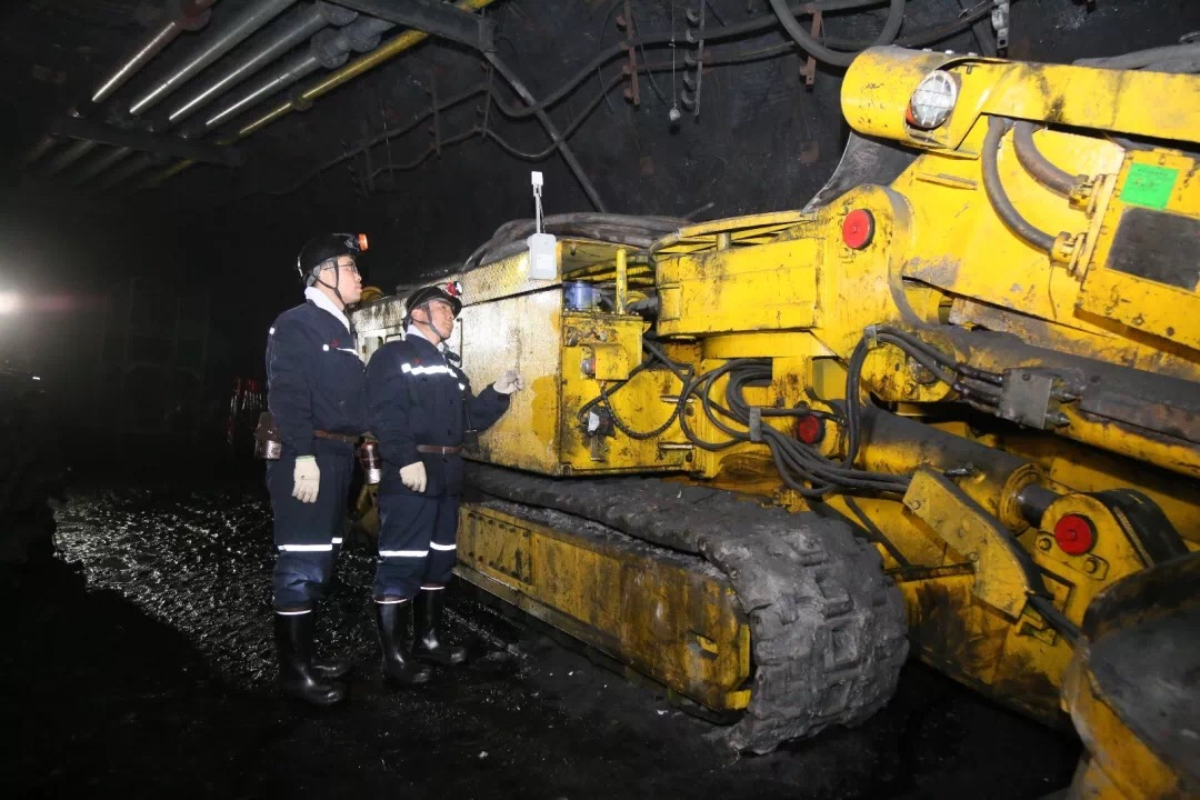 工作人员在井下检查掘进机定位设备